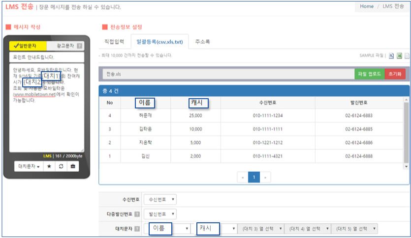 1. µ¥ÀÌÅÍ ÇÕ¼º ±â´É - ¼ö½ÅÀÚ º°·Î ¸Þ½ÃÁö ³»¿ëÀ» °¢°¢ ´Ù¸£°Ô µ¿º¸ Àü¼ÛÇÒ ¼ö ÀÖ½À´Ï´Ù. - ¿¢¼¿ÆÄÀÏÀ̳ª ÁÖ¼Ò·ÏÀÇ Æ¯Á¤ µ¥ÀÌÅ͸¦ ¼±ÅÃÇÏ¿© ¸Þ½ÃÁö¸¦ ÇÕ¼ºÇÒ ¼ö ÀÖ½À´Ï´Ù. ![]() 2. ´Ù¾çÇÑ ¼ö½ÅÀÚ µî·Ï ¹æ¹ý - Á÷Á¢ÀÔ·ÂÀ¸·Î °£ÆíÇÏ°Ô ¼ö½ÅÀÚ µî·Ï °¡´É - Á¤ÇØÁø Æ÷¸ËÀÌ ¾ø´Â ´Ù¾çÇÑ ÆÄÀÏ Áö¿øÀ¸·Î ±âÁ¸ µ¥ÀÌÅ͸¦ º¯È¯ÇÒ ÇÊ¿ä ¾øÀÌ ¼Õ½±°Ô µî·Ï °¡´É(csv, xls, xlsx, txt) - ÁÖ¼Ò·Ï¿¡¼ ½±°í ºü¸£°Ô ¼±ÅÃÇÏ¿© µî·Ï °¡´É ![]() 3. Àü¼Û³»¿ª Á¶È¸ ¹× °á°ú È®ÀÎ - ¸Þ½ÃÁö ³»¿ª ¹× Àü¼Û°á°ú¸¦ ½Ç½Ã°£À¸·Î È®ÀÎÇÒ ¼ö ÀÖ½À´Ï´Ù. ![]() 4. ¸Þ½ÃÁö º¸°üÇÔ ±â´É - ÀÚÁÖ »ç¿ëÇÏ´Â ¸Þ½ÃÁö´Â º¸°üÇÔ¿¡ µî·ÏÇϰí Àç»ç¿ë ÇÒ ¼ö ÀÖ´Â ±â´ÉÀ» Á¦°øÇÕ´Ï´Ù. ![]() 5. Æí¸®ÇÑ °í°´ ÁÖ¼Ò·Ï - ÁÖ¼Ò·Ï ±â´ÉÀ» ÀÌ¿ëÇÏ¿© ¼ö½ÅÀÚ ¸ñ·ÏÀ» °£ÆíÇÏ°Ô °ü¸®ÇÒ ¼ö ÀÖ½À´Ï´Ù. - ÆÄÀÏÀ» ÀÌ¿ëÇÑ Àϰýµî·Ï ±â´ÉÀ» Á¦°øÇÕ´Ï´Ù. ![]() |